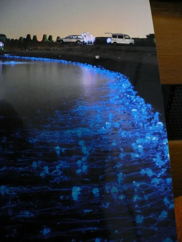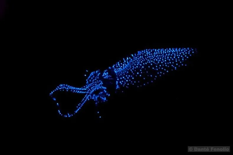 Firefly Squid เป็นปลาหมึกเรืองแสงที่มีความยาวเพียงสามนิ้ว ปลาหมึกมีอวัยวะผลิตแสงพิเศษที่เรียกว่าโฟโตโฟร์ที่เปล่งแสงสีน้ำเงินเข้ม ภาพขนาดใหญ่สามารถพบได้ที่ปลายหนวดและรอบดวงตา สามารถพบโฟโตโฟโต้ขนาดเล็กหลายพันชิ้นได้ทั่วทั้งตัวของปลาหมึกทำให้สามารถเปล่งแสงได้ทั่วทั้งตัว ในอ่าวโทยามะในทะเลญี่ปุ่นตอนกลางมีการพบปลาหมึกมากมาย โดยปกติจะอาศัยอยู่ใต้น้ำ 1200 ฟุตคลื่นในอ่าวโทยามะผลักปลาหมึกขึ้นสู่ผิวน้ำเป็นจำนวนมากโดยที่พวกมันจับปลาได้เป็นตันตั้งแต่เดือนมีนาคมถึงมิถุนายน