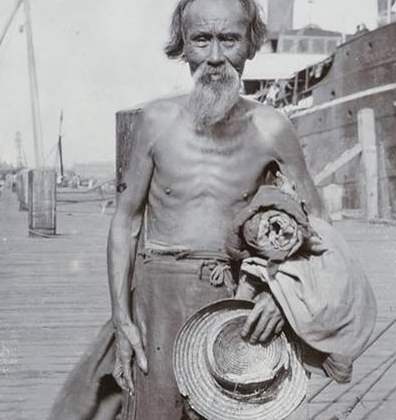 (ขอทานที่ท่าเรือ) ทุกคนรู้ดีว่าราชสำนักในช่วงปลายราชวงศ์ชิงนั้นเน่าเฟะและไม่สามารถต่อต้านการรุกรานของมหาอำนาจต่างชาติได้ การใช้ชีวิตของผู้คนในยุคดังกล่าวยากลำบากอย่างยิ่ง โดยเฉพาะภาระภาษีอันหนักหน่วงยิ่งทำให้ชีวิตของประชาชนแย่ลง นี่คือชุดภาพถ่ายที่สะท้อนสภาพความเป็นอยู่ที่แท้จริงของคนยากจนในช่วงปลายสมัยราชวงศ์ชิง
