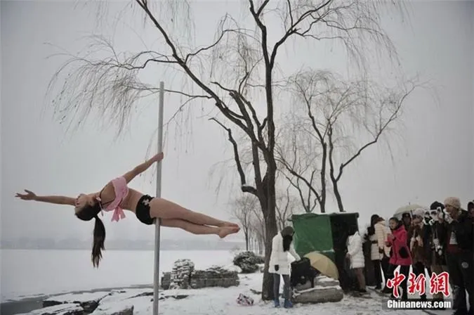 ประเทศจีน: Pole Dance ท่ามกลางอุณหภูมิลบ 50 องศาเซลเซียส
