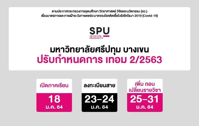 มหาวิทยาลัยศรีปทุม บางเขน เลื่อนการเปิดเรียนและปรับกำหนดการ เทอม 2/2563 ดังนี้