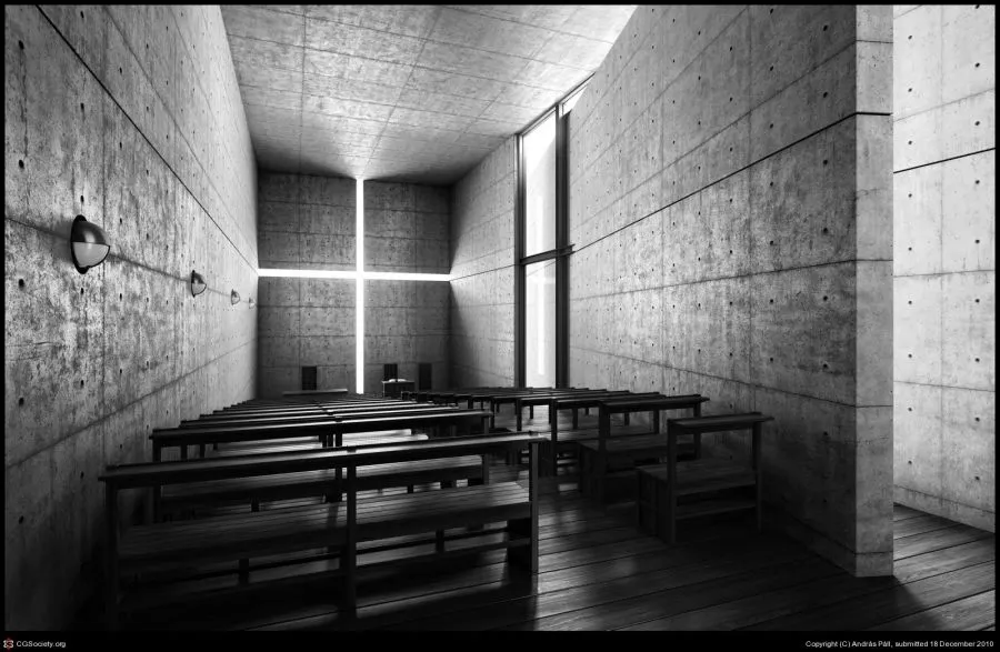 ความเชื่อมโยงนี้ชัดเจนในผลงานของTadao Andoสถาปนิกที่เรียนรู้ด้วยตนเองจากโอซาก้าซึ่งสร้างขึ้นจากรากฐานเชิงเปรียบเทียบของมรดกของ Kenzo Tange Ando ปรมาจารย์ด้านคอนกรีตสร้างความดิบและการบำเพ็ญตบะอย่างเชี่ยวชาญเพื่อต่อต้านความสว่างไสวของแสงธรรมชาติ แม้ว่าโครงสร้างดูเหมือนจะไม่ได้เป็นส่วนหนึ่งของโลกธรรมชาติ แต่ธรรมชาติก็สามารถฝังลึกลงไปในนั้นได้โดยเฉพาะอย่างยิ่งเมื่อมันทำหน้าที่เป็นมหาวิหารเพื่อรองรับยกระดับและเฉลิมฉลอง สำหรับ Ando ที่ผสมผสานความเรียบง่ายของคอนกรีตเข้ากับประเพณีของญี่ปุ่นเช่นการจัดวางโมดูลเสื่อทาทามิมันไม่ต่างจากดินเหนียวในมือของศิลปินที่ได้รูปแบบที่ไม่สามารถทำได้ในไม้
