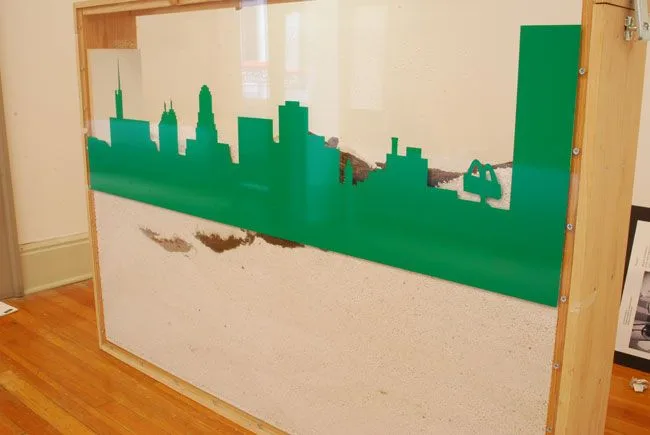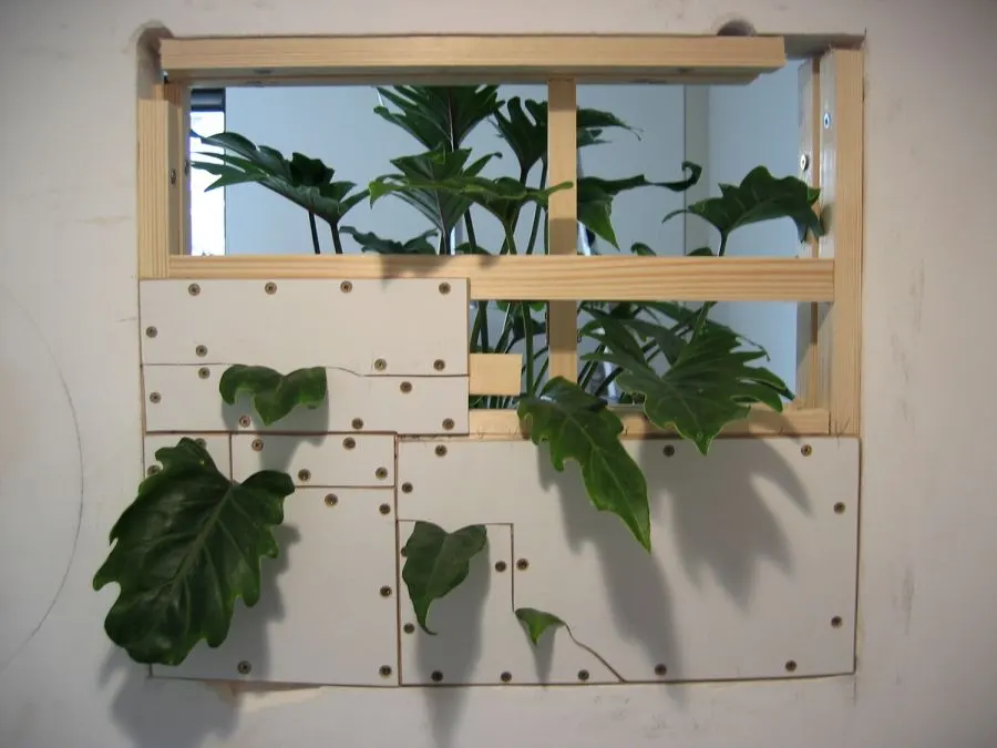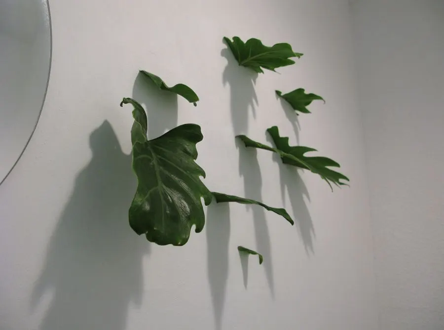 ใบสีเขียวชอุ่มของพืชที่อยู่อาศัย philodendron ดูเหมือนจะมีการเจาะผ่านผนังในการติดตั้งรบกวนโดยศิลปินเบลเยียมตามRuben Bellinkx อย่างที่คุณเห็นใบไม้มีขนาดใหญ่เกินไปและดูเหมือนจะไม่เสียหายที่จะถูกบังคับผ่านรูเล็ก ๆ ในผนังแล้วเขาจะทำอย่างไร? ค่อนข้างเรียบง่ายศิลปินได้สร้างส่วนของผนังขึ้นมาใหม่ตั้งแต่เริ่มต้นโดยตัดรอยต่ออย่างระมัดระวังตามรูปทรงของใบไม้ด้วยจิ๊กซอว์