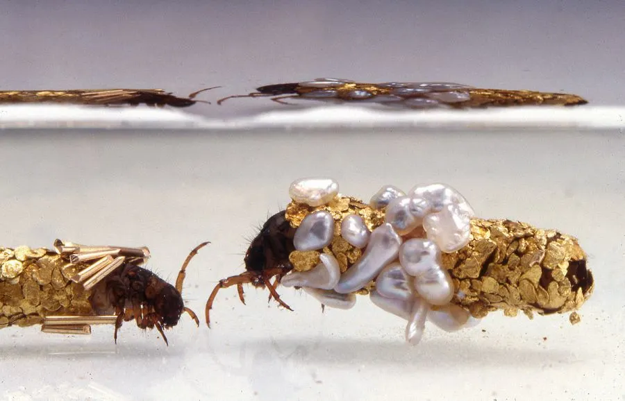 เมื่อวางไว้ในพิพิธภัณฑ์สัตว์น้ำที่ไม่มีอะไรเลยนอกจากทองเทอร์ควอยซ์และไข่มุกเพื่อทำรังไหมตัวอ่อนของแคดดิสลี่จะสร้างตัวเองที่ล้อมรอบด้วยอัญมณีที่ดูเหมือนสมบัติประติมากรรมชิ้นเล็ก ๆ เมื่อทำเสร็จ ศิลปินHubert Duprat 'ร่วมมือ' กับตัวอ่อน Trichopteres เพื่อสร้างผลลัพธ์สุดท้ายซึ่งรวมตัวกันกับไหมที่ขับออกมาจากต่อมน้ำลายของพวกมัน ตัวอ่อนใช้เวลาสองสามสัปดาห์ในรังไหมที่ประดับด้วยเพชรพลอยเหล่านี้ก่อนที่จะออกมาเป็นแมลงวันที่โตเต็มที่