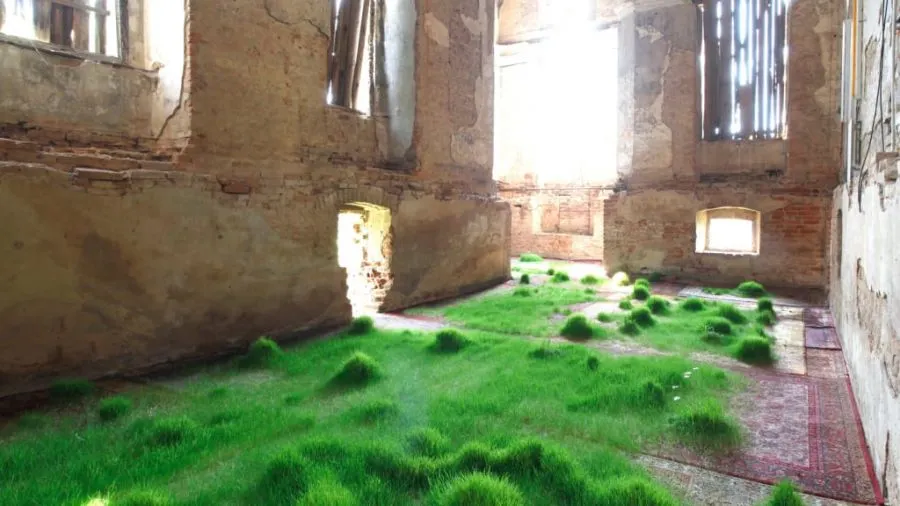 ต้นหญ้างอกขึ้นจากเส้นใยของพรมเปอร์เซียที่รดน้ำอย่างซื่อสัตย์ในการติดตั้งนี้โดย Martin Roth ศิลปินจากนิวยอร์กซึ่งจัดแสดงครั้งแรกที่ปราสาทออสเตรียในปี 2555 และต่อมาภายในศูนย์วัฒนธรรมเกาหลีของกรุงลอนดอนซึ่งเป็นส่วนหนึ่งของการแสดงชื่อ 'Riptide' ในระหว่างการแสดงหญ้าก็งอกขึ้นมาจากเมล็ดเติบโตเป็นกระจุกเข้ายึดพื้นที่ทั้งหมดและในที่สุดก็ตายลงเมื่อเส้นใยของพรมไม่สามารถให้สารอาหารเพียงพอสำหรับมันและรากหญ้าก็ทำลายเส้นใย