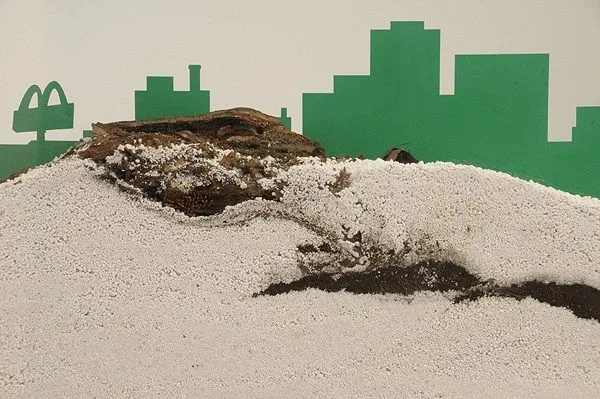 โครงการนี้โดยศิลปินElizabeth Demaray ได้รับการว่าจ้างจากศูนย์การสำรวจและการรับรู้ (CEPA) โดยใช้ประโยชน์จากมดที่มาจากฟาร์มมดเชิงพาณิชย์ที่มีภาพเส้นขอบฟ้าของเมืองบัฟฟาโลนิวยอร์ก งานนี้มีชื่อว่า 'Corpor Esurit หรือเราทุกคนสมควรได้พักในวันนี้' งานนี้นำเสนออาหารจานด่วนสำหรับมดจากแมคโดนัลด์เป็นระยะเวลาหนึ่งเดือนโดยมีจุดประสงค์เพื่อพิจารณาผลกระทบของแหล่งอาหารอุตสาหกรรมที่มีต่อสายพันธุ์อื่นที่ไม่ใช่ตัวเราเอง มดที่เลือกเข้าร่วมโครงการมีช่วงชีวิตตามธรรมชาติระหว่างสองถึงสามสัปดาห์ คุณอาจแปลกใจที่รู้ว่าคนที่อยู่ในฟาร์มมดแห่งนี้และเลี้ยงบิ๊กแม็คและเฟรนช์ฟรายส์สามารถมีชีวิตอยู่ได้เป็นเวลา 23 วันซึ่งเกินอายุขัยเกือบหนึ่งสัปดาห์