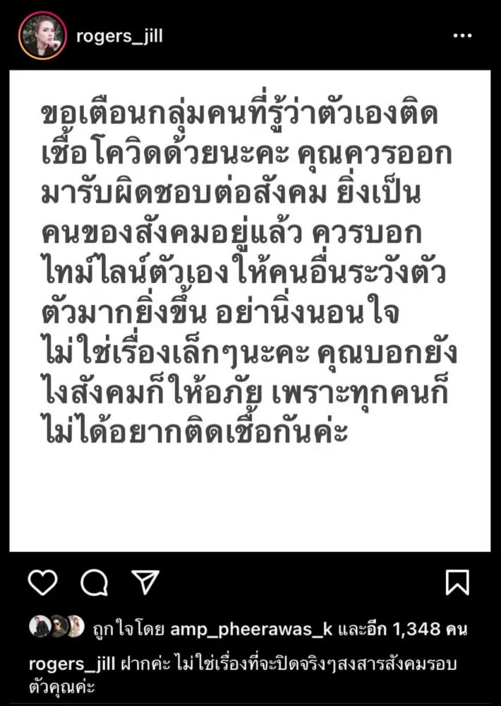 ดาราสาว จิลล์ โรเจอร์ โพสต์เตือนใครรึป่าวน้าาาา ?