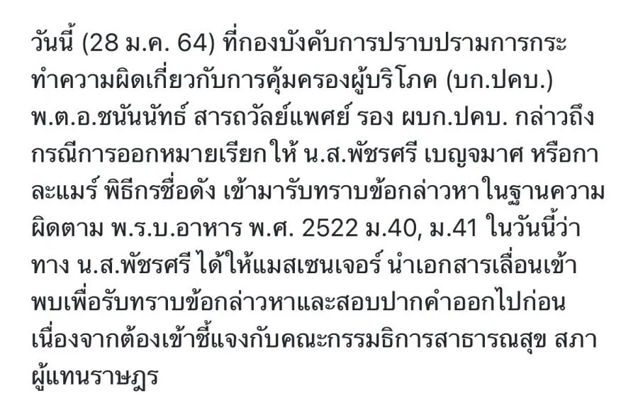 ส่วนด้านคดีตำรวจแจ้ง กาละแมร์ขอเลื่อนเข้ารับทราบข้อกล่าวหาตำรวจ.ปคบ อ้างว่าติดเข้าชี้แจ้งกับคณะกรรมาธิการสาธารณสุขของสภา ตร.จะหมายเรียกมาอีกครั้ง 8 ก.พ. ถ้าไม่มาถือเป็นเหตุออกหมายจับแน่นอน