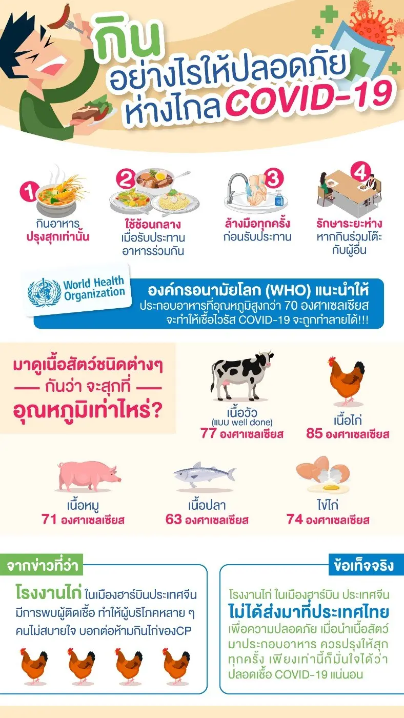 “ปัจจุบันยังไม่มีหลักฐานว่าการประกอบหรือบริโภคอาหารสัมพันธ์กับการระบาดของโควิด-19”