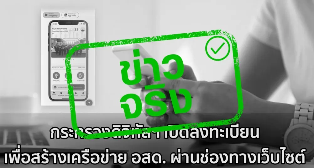 อ้างอิงจาก: https://www.antifakenewscenter.com/กระทรวงดิจิทัลฯ-เปิดลงทะเบียนเพื่อสร้างเครือข่าย-อสด-ผ่านช่องทางเว็บไซต์-จริงหรือ/