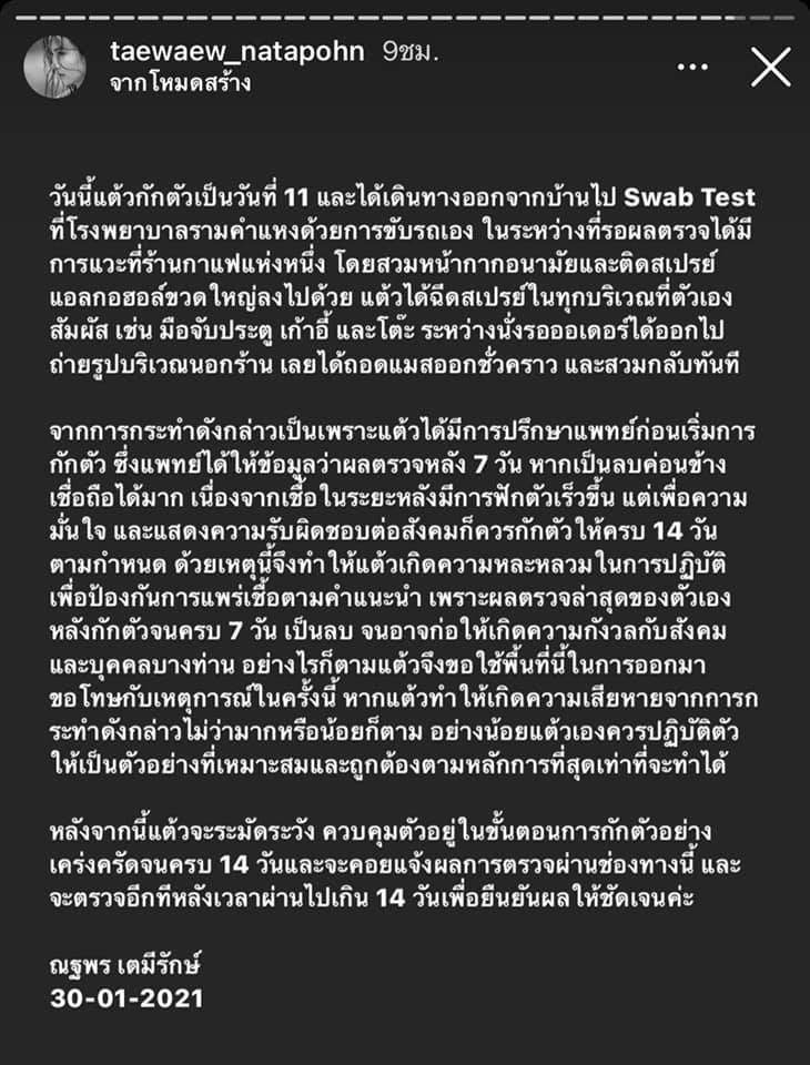 ดราม่าเข้าแต้ว ณฐพรในวันกักตัววันที่ 11 แวะร้านกาแฟแห่งหนึ่งระหว่างรอผลตรวจ ไม่ใส่หน้ากากอนามัย