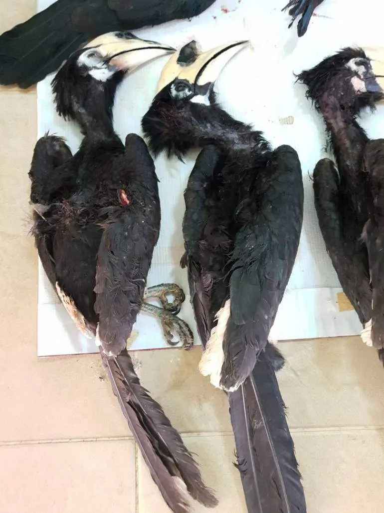 ซึ่งจากการศึกษาวิจัยกว่า 6 โครงการพบว่า ในระยะเวลาหลายปีที่ผ่านมานี้ เผ่าพันธุ์นกเงือกได้ถูกรุกรานและเสี่ยงต่อการสูญพันธุ์ เนื่องมาจากการถูกล่า หรือแม้กระทั่งการลดจำนวนลงของผืนป่า