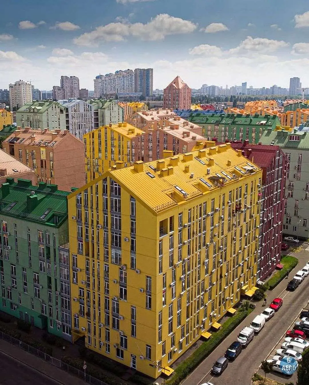 เมืองเคียฟ ภาพถ่ายด้วยโดรน ที่เห็นเมืองคล้ายเป็นตัวต่อ Lego