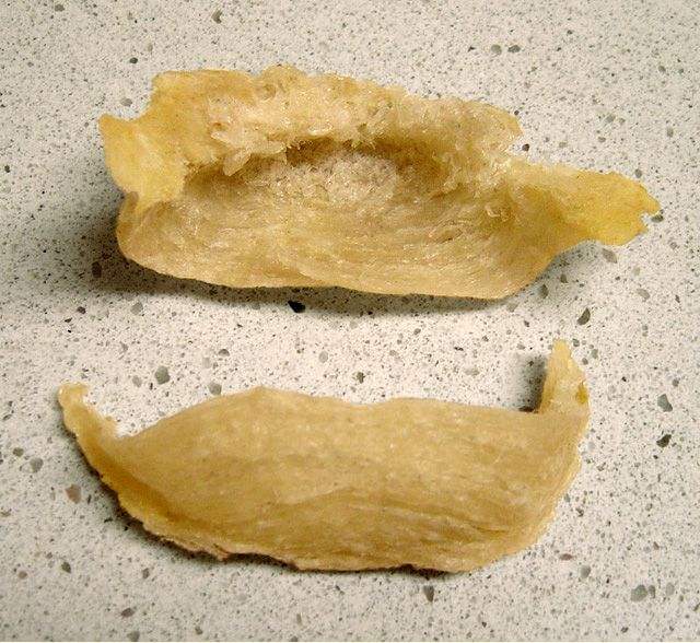 และเป็นที่รู้กันว่า มันคือครีบของปลาฉลาม ที่มีลักษณะเป็นกระดูกอ่อน ส่วนที่นำมาทำเป็นหูฉลามนั้น ก็คือ ก้านครีบ โดยที่ปลาฉลาม 1 ตัว จะมีส่วนที่นำมาทำเมนูหูฉลามได้เพียง 3 ส่วน คือ ครีบหลัง ครีบหาง และครีบ-อก ซึ่งต้องผ่านกระบวนการหลายอย่าง ตั้งแต่การแตกแห้ง ต้มจนเปื่อย และขูดหนังทิ้งจนเหลือแต่กระดูกอ่อน