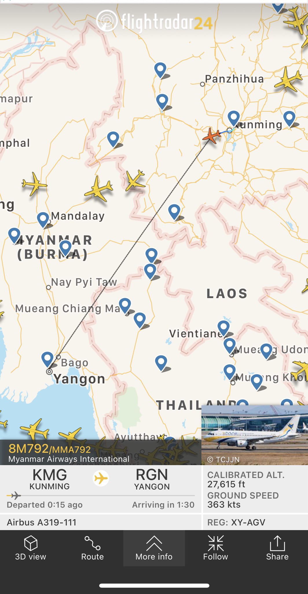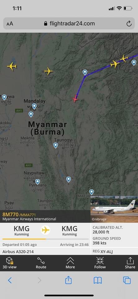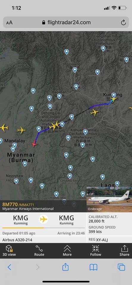 ชาวเมียนมาสงสัย หลังพบไฟล์ทบินจากคุนหมิงประเทศจีน เดินทางมายังเมืองร่างกุ้งของเมียนมากลางดึก เวลาเที่ยงคืนครึ่งตามเวลาท้องถิ่น