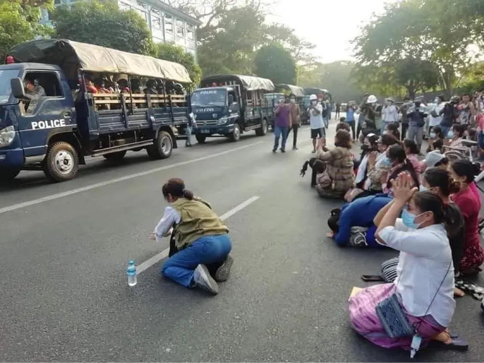 ชาวบ้านเมียนมากราบไหว้อ้อนวอนทหารให้ปล่อยตัวลูกหลานที่ถูกจับกุม