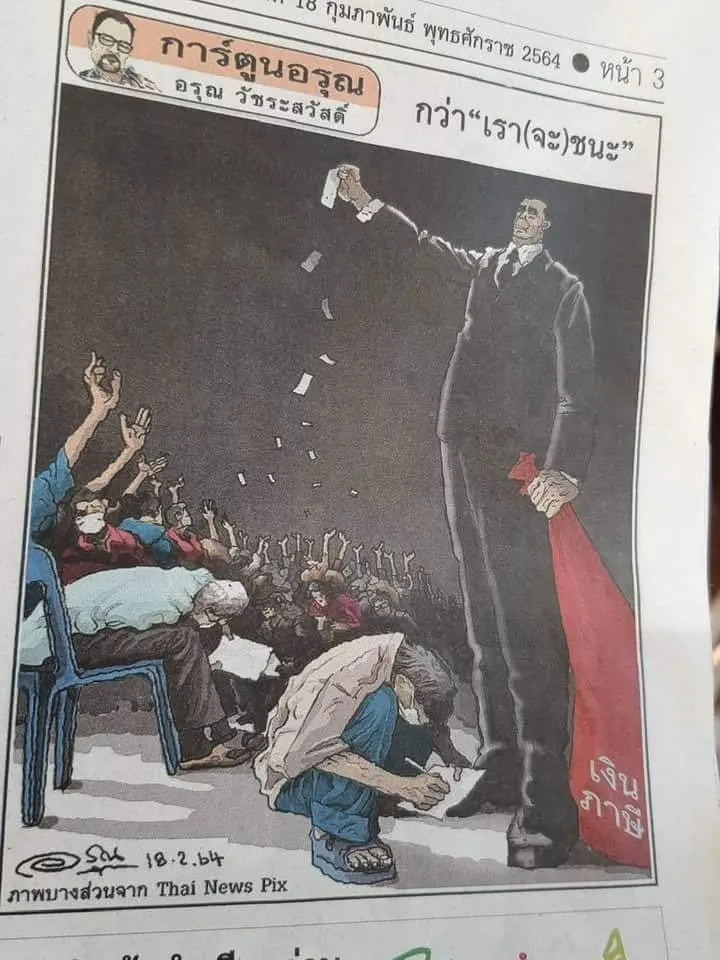 ได้มีการแชร์ภาพการ์ตูนเกี่ยวกับการบริหารงานของรัฐ กรณีโครงการ "เราชนะ" ซึ่งผู้วาดนั้นได้แซะการบริหารจัดการของรัฐบาลสื่อออกมาเป็นภาพวาด ท่านสมาชิกละ รู้สึกอย่างไรกัภาพวาดภาพนี้