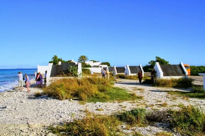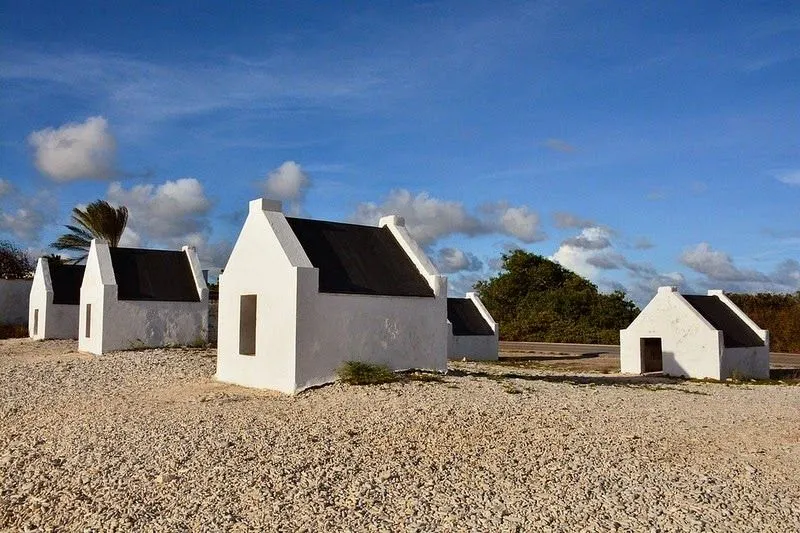 กระท่อมหินสีส้ม / แดงซึ่งทำหน้าที่เป็นที่พักอาศัยของทาสยังคงมีให้เห็นในโบแนร์