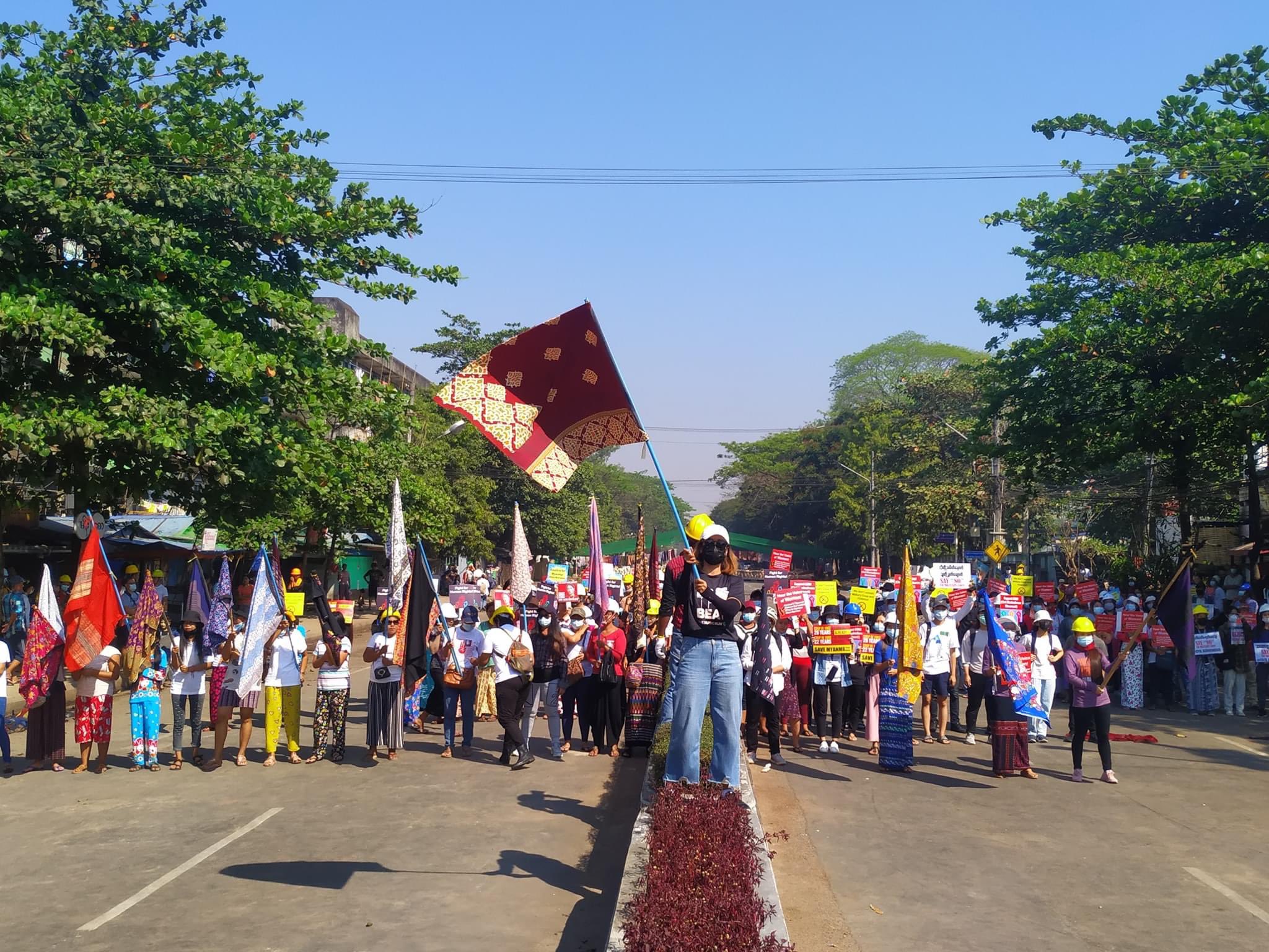 Myanmar Now รายงานว่า ราวแขวนผ้าถุงพาดขวางถนนเป็นเทคนิคของประชาชนเมียนมาที่ร่วมขบวนการต่อต้านรัฐประหาร ใช้เป็นเครื่องมือชะลอการจู่โจมของทหาร ตำรวจ