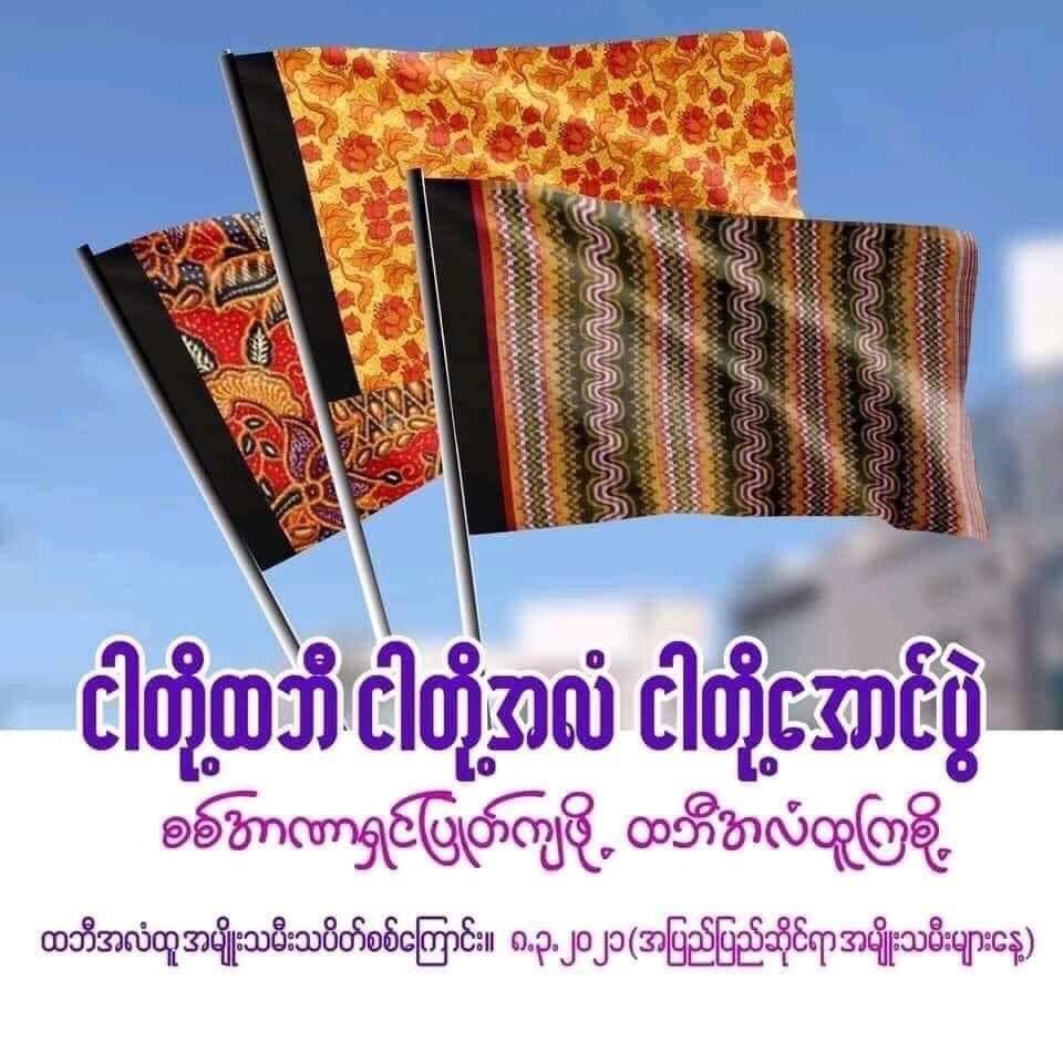 แปะรูป มิน อ่อง หล่าย กับผ้าถุงหวังให้อำนาจเสื่อมถอยไวๆ โบกโสร่ง-ผ้าถุงสู้เผด็จการ!