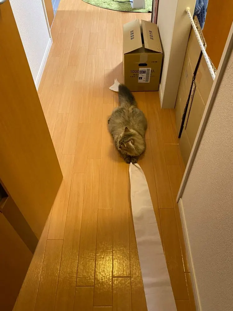 เผลอไม่ได้แมวที่บ้านน่ะ มักจะชอบหาอะไรเลยแก้เบื่อเสมอ ถ้าเราไม่มีของเล่นให้ก็ไปหาของมาเล่นเอง อย่างทิชชู่ในห้องน้ำเนี่ย โดนรื้อประจำเลยล่ะ