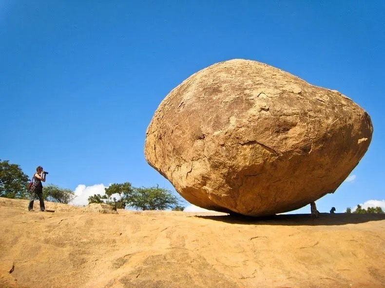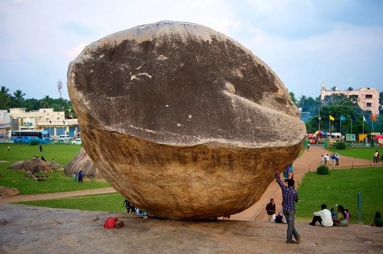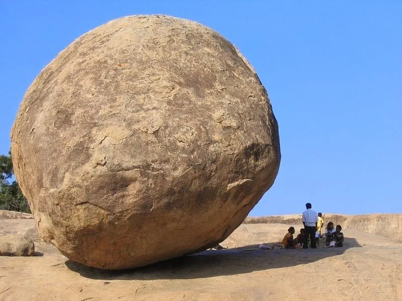 ลูกเนยของกฤษณะ - ก้อนหินสมดุลที่มหาพลีปุรัม