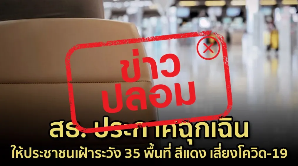 ข่าวปลอม ‼️ สธ. ประกาศฉุกเฉิน ให้ประชาชนเฝ้าระวัง 35 พื้นที่สีแดง เสี่ยงโควิด-19