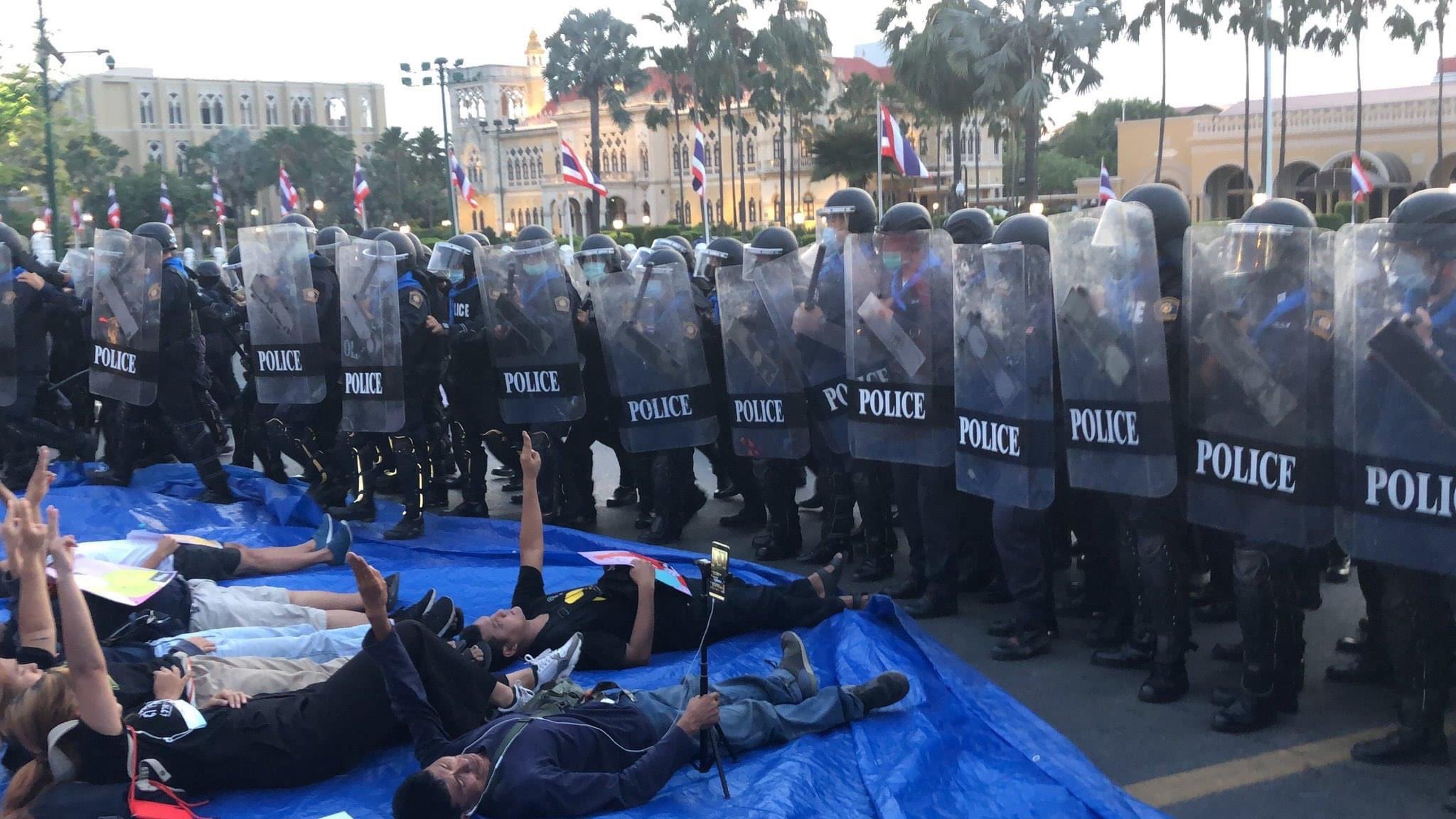- #หมู่บ้านทะลุฟ้า ชุมนุมอย่างสงบ โดนสลายการชุมนุม จับไปแบบไม่มีหมาย ทนาย/ญาติก็ไม่ให้ติดต่อก่อนนำตัวไป จับคนยัดๆใส่ในรถ คนมาชุมนุมต่อโดนหาว่าขัดขวางการจราจร ตัดภาพไปที่ #ใส่ชุดไทยไถสเก็ต ไม่เจอพ.ร.ก.ฉุกเฉินโควิด ไม่ขวางการจราจรมากเลยมั้ง