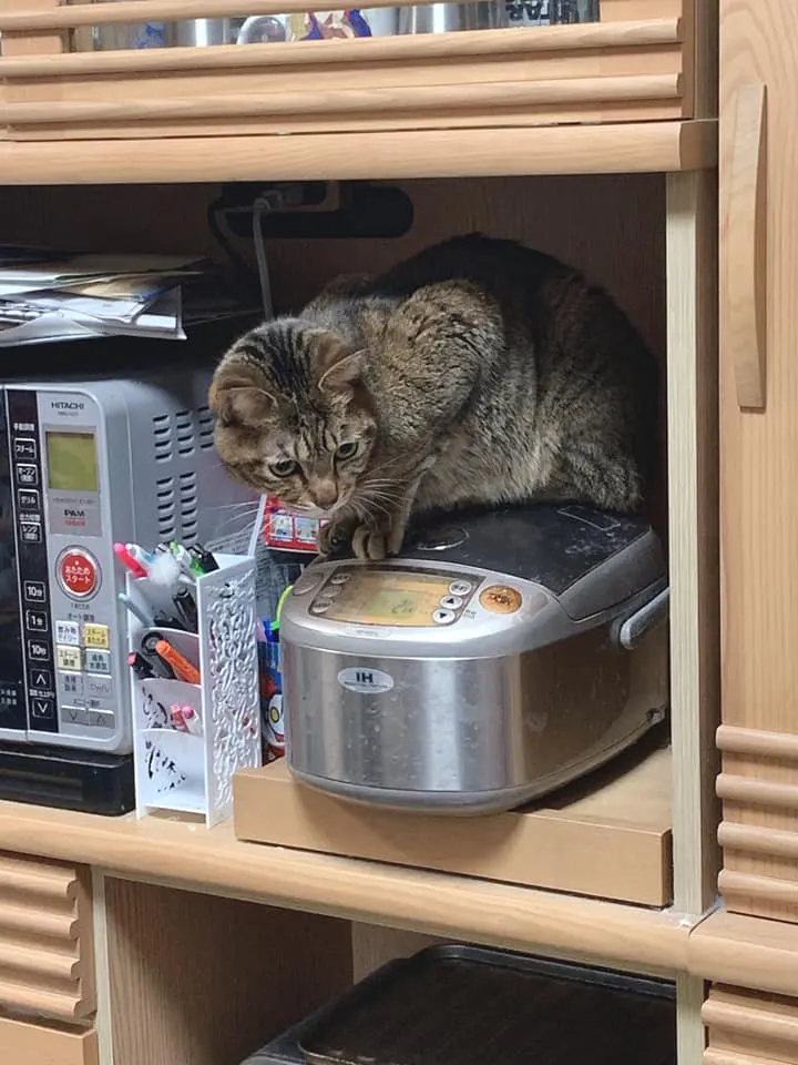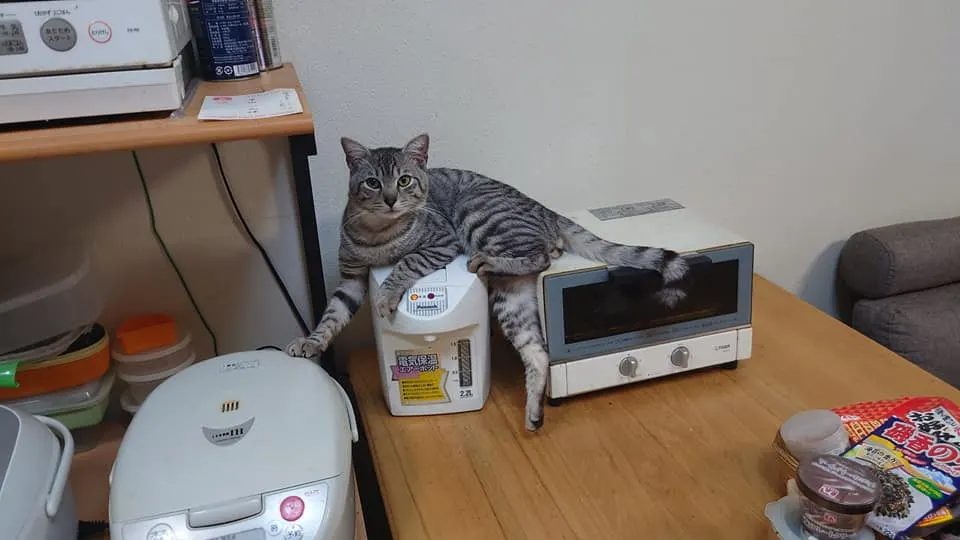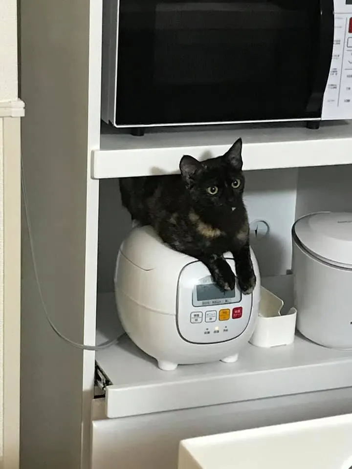 แมวต่างประเทศก็ลำบากหน่อยตรง อากาศมันเย๊นเย็น ต้องหาที่อุ่นๆ อยู่ ส่วนแมวไทยก็ต้องหาที่เย็นๆ อยู่แทน แต่โดยปกติแล้วแมวชอบที่อุ่นๆ มากกว่า เราเลยได้เห็นภาพนี้กันค่ะ อย่างน้อยขอความอบอุ่นจากเหล่าเครื่องใช้ไฟฟ้าก็แล้วกัน