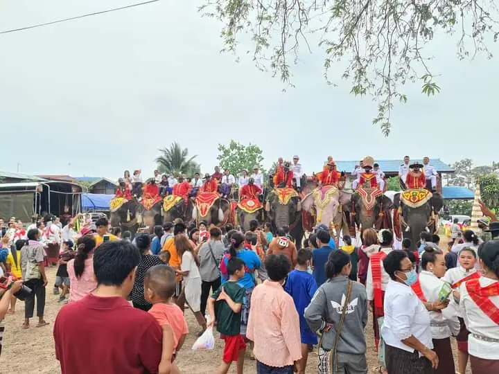 งานช้างอีหลี บ่แม้นธรรมดาเด้อ พี่น้องบ้านยางโล้น อ.ภูพาน เข้มแข็งคักขนาดครับ ชื่นชมๆ