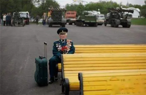 ทหารผ่านศึกนั่งอยู่บนเก้าอี้รอสหายของเขาจากกองทหาร