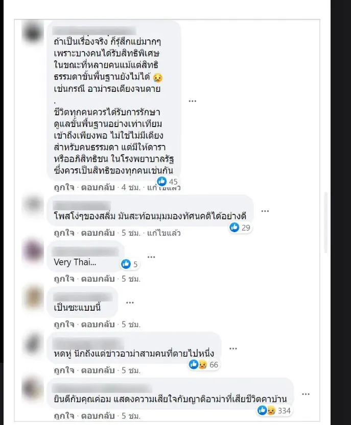 ต่อมามีคนเข้ามาแชร์และวิพากษ์วิจารณ์จำนวนมาก บางคนแขวะไปถึงยายที่ตายเพราะเตียงไม่พอ