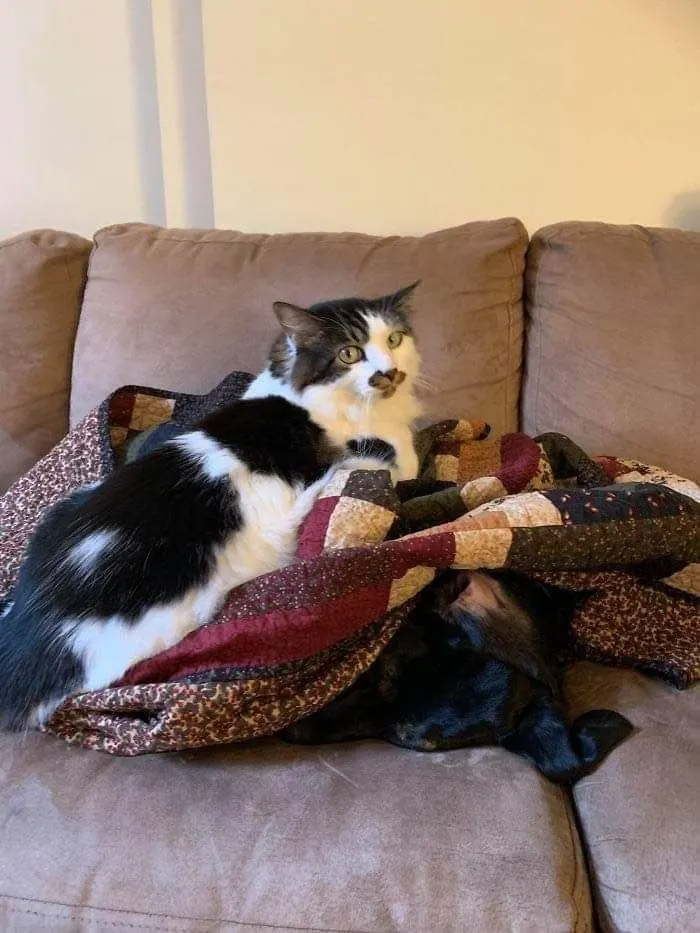 ถึงแม้ว่าหมาจะตัวใหญ่กว่าแมว แต่มีหลายๆ บ้านจะเห็นได้ว่าแมวนั้นมีอำนาจใหญ่กว่าหมาซะอีก มีภาพมาพิสูจน์ให้ดูกัน