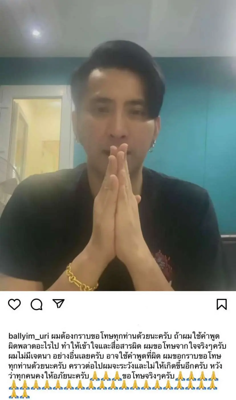 “ถ้าผมใช้คำพูดผิดพลาดอะไรไป ทำให้เข้าใจและสื่อสารผิด ผมขอโทษจากใจจริงๆครับ ผมไม่มีเจตนา อย่างอื่นเลยครับ ผมขอกราบขอโทษทุกท่านด้วยนะครับ คราวต่อไปผมจะระวังและไม่ให้เกิดขึ้นอีกครับ หวังว่าทุกคนคงให้อภัย”