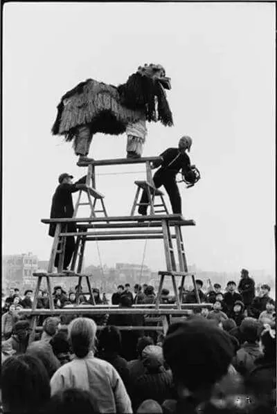 ในปี 1957 การเต้นสิงโตในหมู่บ้านในเขตชานเมืองของกรุงปักกิ่ง