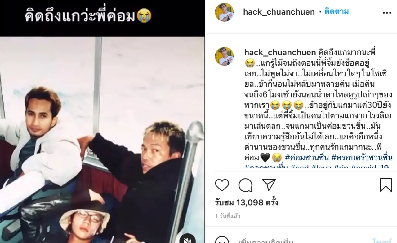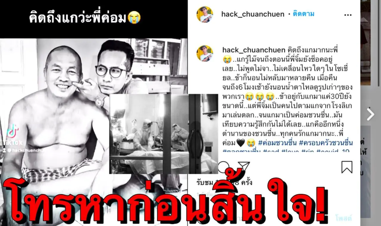 ในชีวิตมีไม่กี่คนที่เรารักมาก จากกรณี น้าค่อม เสียชีวิตเพราะ โควิด19 ช่วงเช้าวันที่ 1 พ.ค. 2564 ที่ผ่านมา ล่าสุด แฮ็ค ชวนชื่น ได้เผยกับนักข่าวว่า น้าค่อม ได้โทรหาตนเองก่อนจะสิ้น โดยตลกดังได้บอกว่า รักเพื่อนมาก ด้วยเสียงที่เหมือนจะพูดไม่ไหว เป็นดั่งคำสั่งเสียสุดท้าย.