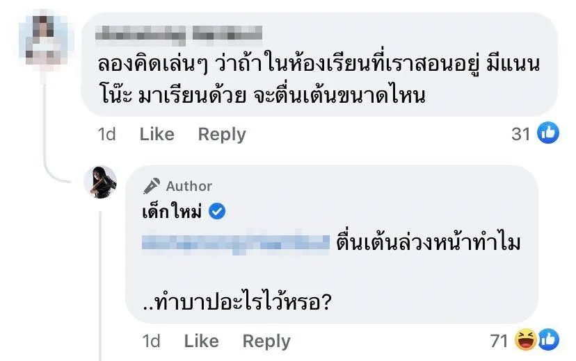 อย่างไรก็ตามหลายๆคนหลังดูจบก็แห่กันไปที่เพจของซีรี่ย์กันอย่างล้นหลามเพราะคงจะอินกับความสนุกของซีรี่ย์ แต่แอดมินไม่ทำให้ผิดหวัง สวมบทตัวแสดงนำตอบคนที่เข้ามาคอมเมนท์