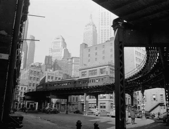 9. 4 มิถุนายน ค.ศ. 1938 รถไฟวิ่งผ่านแมนฮัตตัน, นิวยอร์ก.