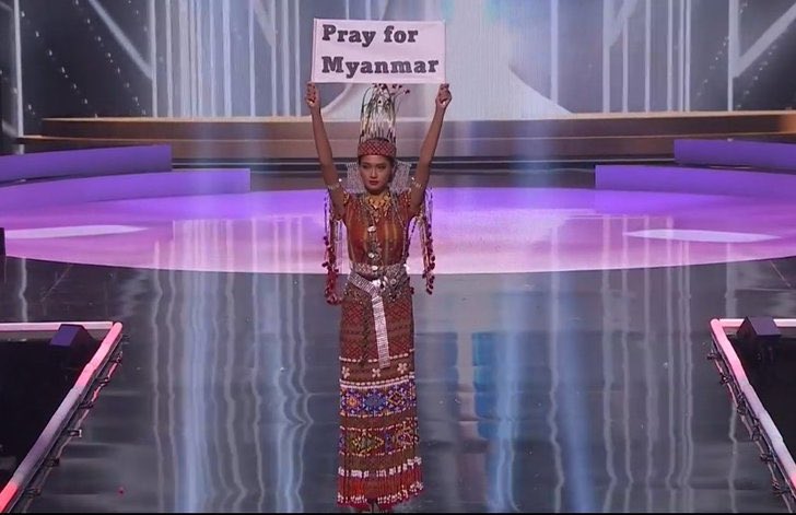 นางงามพม่า ตอบคำถามในรอบลองไฟนอลว่า "ถ้าฉันมีพลังวิเศษ ฉันจะขอมีพลังที่สามารถยุติการรัฐประหาร ที่กำลังเกิดขึ้นภายในประเทศของฉัน และ ทุกๆที่ทั่วโลกเช่นกัน"