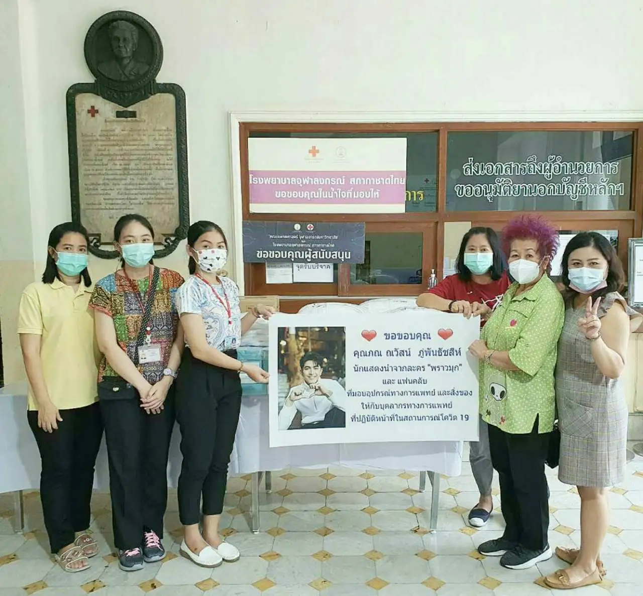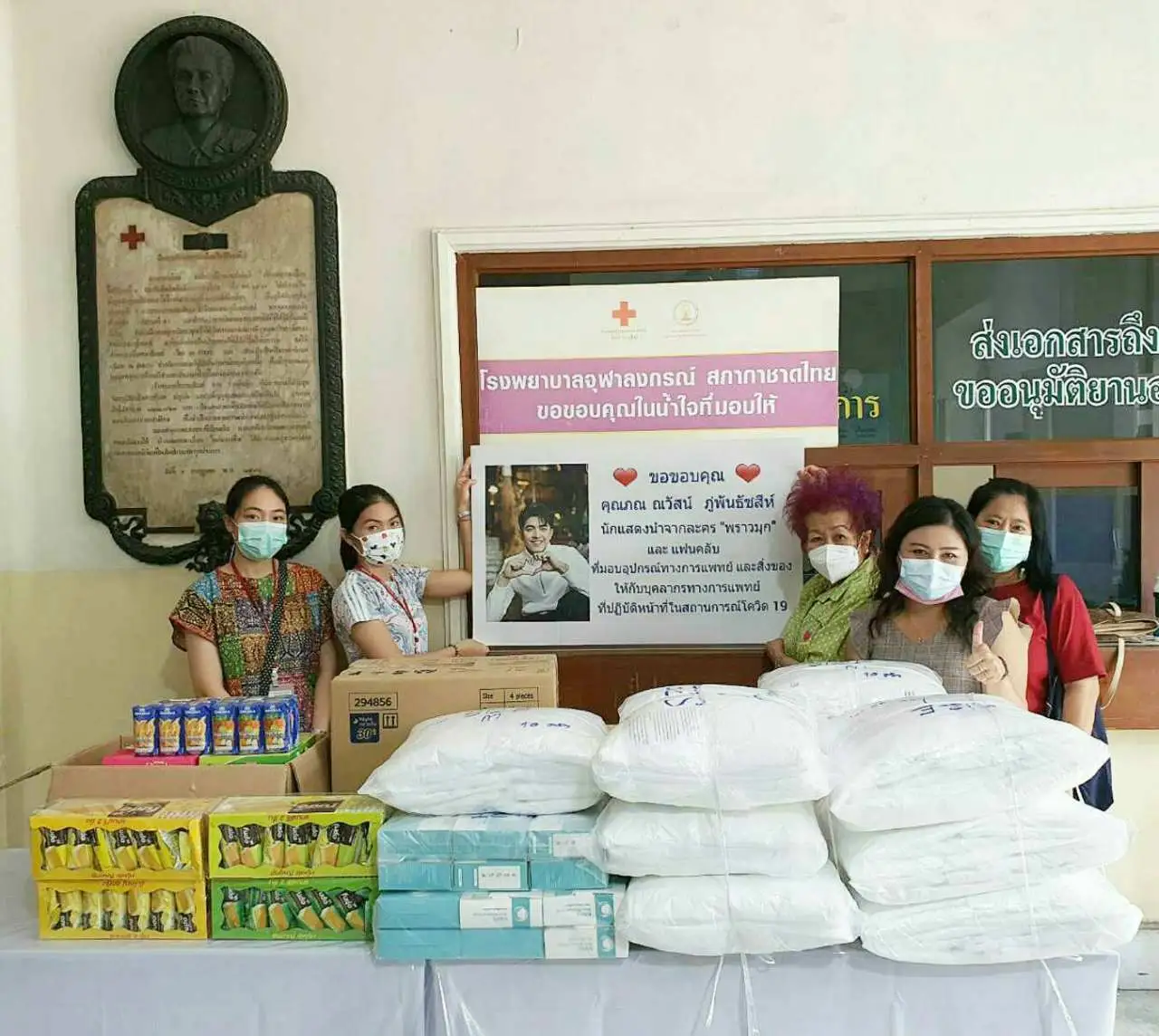 ภณ ณวัสน์ และแฟนคลับ นำอุปกรณ์ทางการแพทย์ และอาหารสิ่งของ มอบให้บุคลากรทางการแพทย์ ณ รพ.จุฬาฯ สภากาชาดไทย