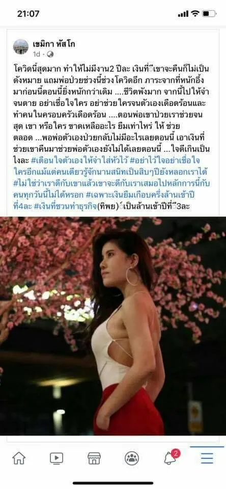 โควิดนี้สุดมาก ทำให้ไม่มีงาน2 ปีละ เงินที่เขาจะคืนก็ไม่เป็นดังหมาย แถมพ่อป่วยช่วงนี้ช่วงโควิดอีก ภาระจากที่หนักอึ้งมาก่อนนี้ตอนนี้ยิ่งหนักกว่าเดิม ....ชีวิตพังมาก จากนี้ไปให้จำจนตาย อย่าเชื่อใจใคร อย่าช่วยใครจนตัวเองเดือดร้อนและทำคนในครอบครัวเดือดร้อน ....ตอนพ่อเขาป่วยเราช่วยจนสุด เขา หรือใคร ขาดเหลืออะไร ยืมเท่าไหร่ ให้ ช่วยตลอด ...พอพ่อตัวเองป่วยกลับไม่มีอะไรเลยตอนนี้ เอาเงินที่ช่วยเขาคืนมาช่วยพ่อตัวเองยังไม่ได้เลยตอนนี้ ...ใจดีเกินเป็นไงละ #เตือนใจตัวเองให้จำใส่หัวไว้ #อย่าไว้ใจอย่าเชื่อใจใครอีกแม้แต่คนเดียวรู้จักนานสนิทเป็นสิบๆปียังหลอกเราได้ #ไม่ใช่ว่าเราดีกับเขาแล้วเขาจะดีกับเราเสมอไปหลักการนี้กับคนทุกวันนี้ไม่ได้หรอก #เฉพาะเงินยืมเกือบครึ่งล้านเข้าปีที่4ละ #เงินที่ชวนทำธุรกิจ(ทิพย์)เป็นล้านเข้าปีที่ี3ละ