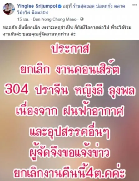 เคยขึ้นคอนเสิร์ตกับ ลุงพล มาแล้ว สำหรับ หญิงลี ศรีจุมพล ที่ช่วงแรกๆ ไม่รู้ว่าคิดอะไรถึงได้ดึง ลุงพล มาขึ้นเวทีคอนเสิร์ตด้วย 2-3 ครั้ง แต่ก็เจอกระแสแอนตี้จากหลายๆ คน ว่าไม่เหมาะสม เพราะลุงพล เป็นผู้ต้องสงสัยฆ่าน้องชมพู่ สุดท้าย หญิงลี เริ่มตาสว่าง ก็ออกมาประกาศยกเลิกคอนเสิร์ตกับลุงพลแบบกะทันหัน