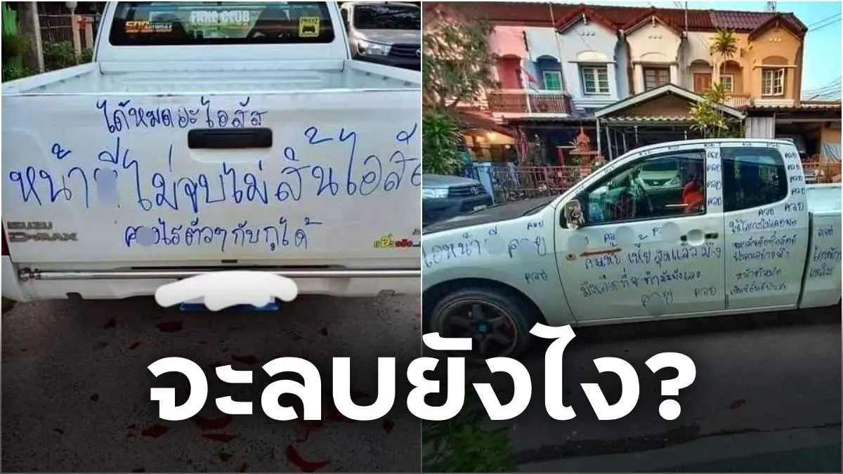 ชาวเน็ตแชร์ภาพโดนเขียนด่า ทั่วคันรถแบบนี้จะลบยังไงละ