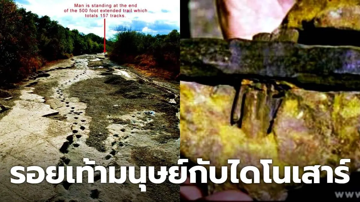 รอยเท้ามนุษย์กับไดโนเสาร์ อยู่เคียงข้างกันเป็นระยะทาง 500 ฟุต มีทั้งหมด 157 รอย พบที่พื้นหินใต้แม่น้ำที่แห้งผากของแม่น้ำ Paluxy ใกล้เมืองเกลนโรส (Glen Rose) รัฐเท็กซัส สหรัฐอเมริกา อายุรอยเท้าถูกตรวจสอบด้วยกรรมวิธีคาร์บอน 14 ผลออกมาว่าอยู่ในยุคครีเทเชียส อายุประมาณ 145 ล้านปีก่อน โดยบริเวณที่ใกล้เคียงกันนั้นมีขื่อเรียกว่า “อุทยานรัฐหุบเขาไดโนเสาร์” (Dinosaur Valley State Park) ซึ่งมีการค้นพบรอยเท้าไดโนเสาร์อีกหลายร้อยรอย บนชั้นหินในยุคครีเตเชียสเช่นเดียวกัน