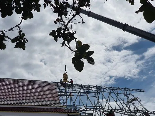 วันนี้ ที่เดียวกัน มีศาลาหลังใหม่ วางฐาน ตั้งโครง อย่ างที่เห็น กว่า 50 % ที่ทำได้ หวังว่า อีกบ่นานคงสมบูรณ์ “..ยกฉั ตรธรรมจั ก ร (ใบระก า)..” สร้างศาลาการเปรียญ วัดโนนเก่า บ.โนนใหญ่ อ.เขื่องใน จ.อุบลฯ เอาบุญมาฝาก ครับ