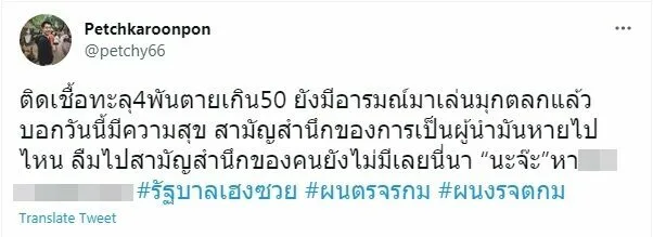 ติดเชื้อทะลุ 4 พันตายเกิน 50 ยังมีอารมณ์มาเล่นมุกตลก แล้วบอกวันนี้มีความสุข สามัญสำนึกของการเป็นผู้นำมันหายไปไหน ลืมไปสามัญสำนึกของคนยังไม่มีเลยนี่นา “นะจ๊ะ” หาXXX