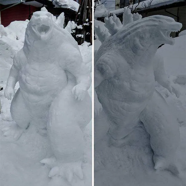 ศิลปินญี่ปุ่นใช้หิมะเพื่อสร้าง 'สัตว์ประหลาด' ต่างๆ ได้น่ารักมาก