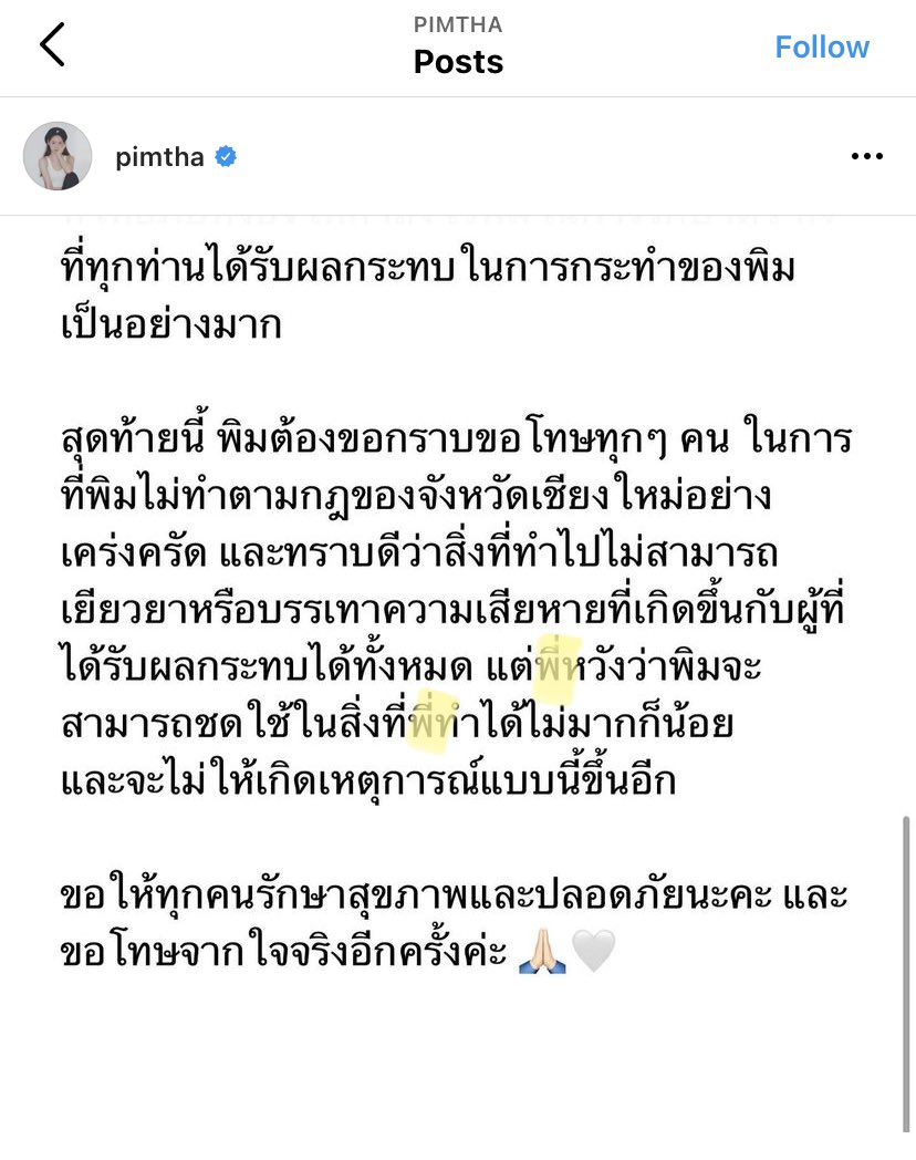 ชาวเน็ตจับโป๊ะ #พิมฐา หลังโพสต์ข้อความขอโทษ แต่ 'พี่' ในโพสต์คือใคร???