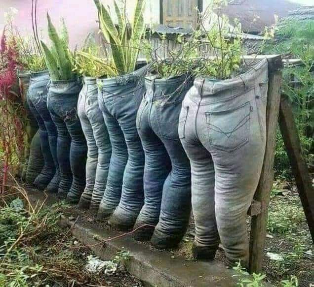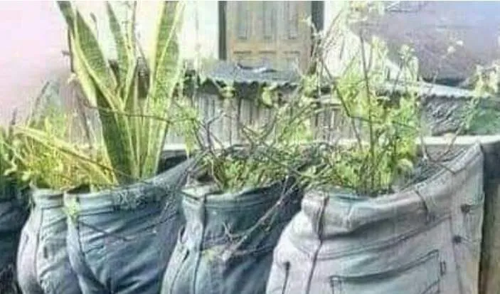 ดังนั้นการหากระถางเก๋ ก็ยากเนาะ เอานี้ป่ะล่ะ แค่เอากางเกงยีนส์เก่าๆ มาทำเป็นกระถาง