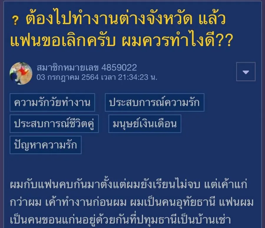 ต้องไปทำงานต่างจังหวัด แล้วแฟนขอเลิก ทำไงดี?