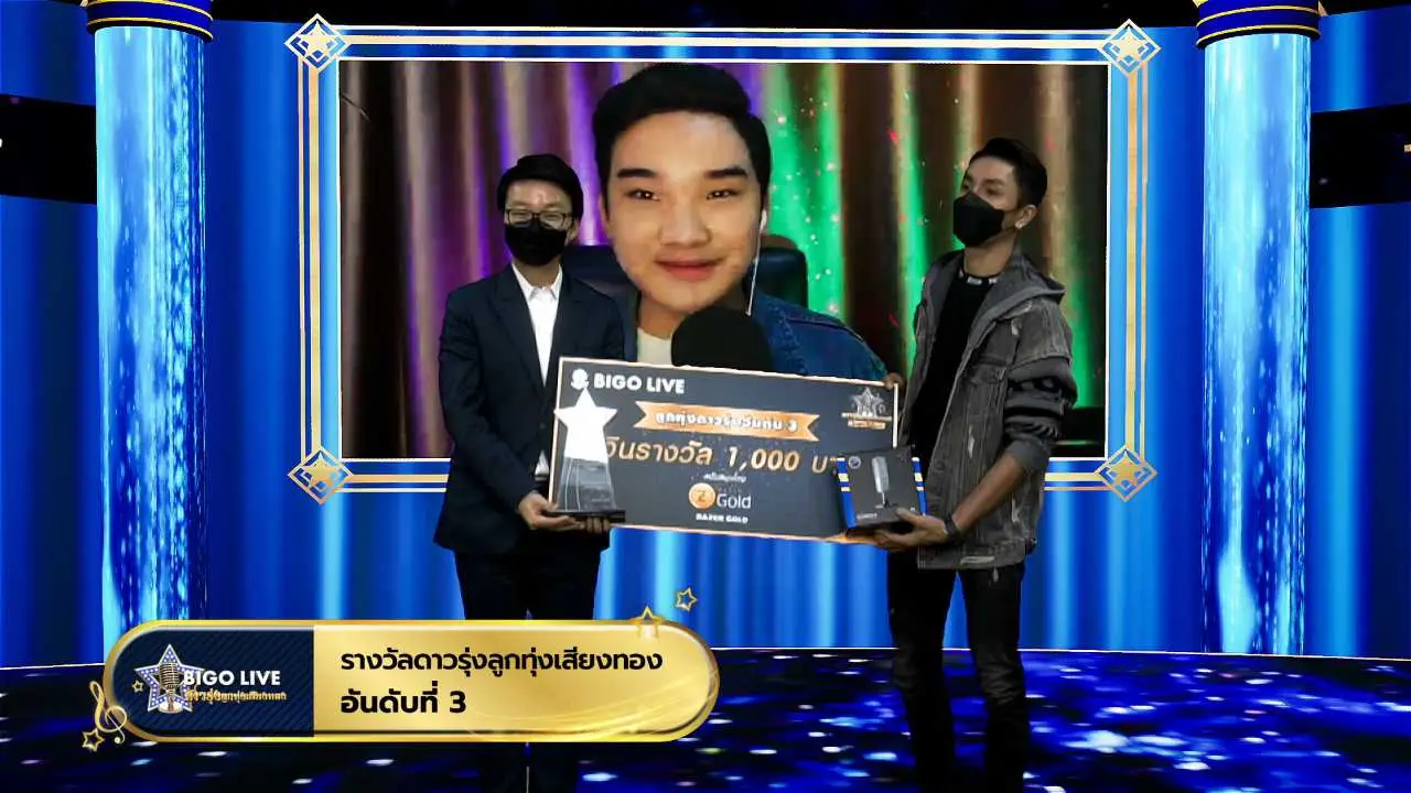 - และมาถึงรางวัล Bigo ดาวรุ่ง ลูกทุ่งเสียงทอง อันดับที่ 1 ได้แก่ “ฝน -กรรณิการ์ จุลอักษร” (BIGO ID: Olin642) จากทีมเมนเทอร์ “เอิ้นขวัญ วรัญญา” ได้รับรางวัลมูลค่ารวม 1,030,500 บาท และยังได้ออกซิงเกิลกับทาง BIGO พร้อมถ่ายทำ MV ขึ้นจอ LED ที่ลานน้ำพุพารากอน รวมถึงรางวัลอื่น ๆ อีกมากมาย